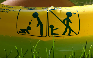 I'm not sure this pool is deep enough for a toddler to drown in--this pictoral warning made me laugh. Amelie circa August '05